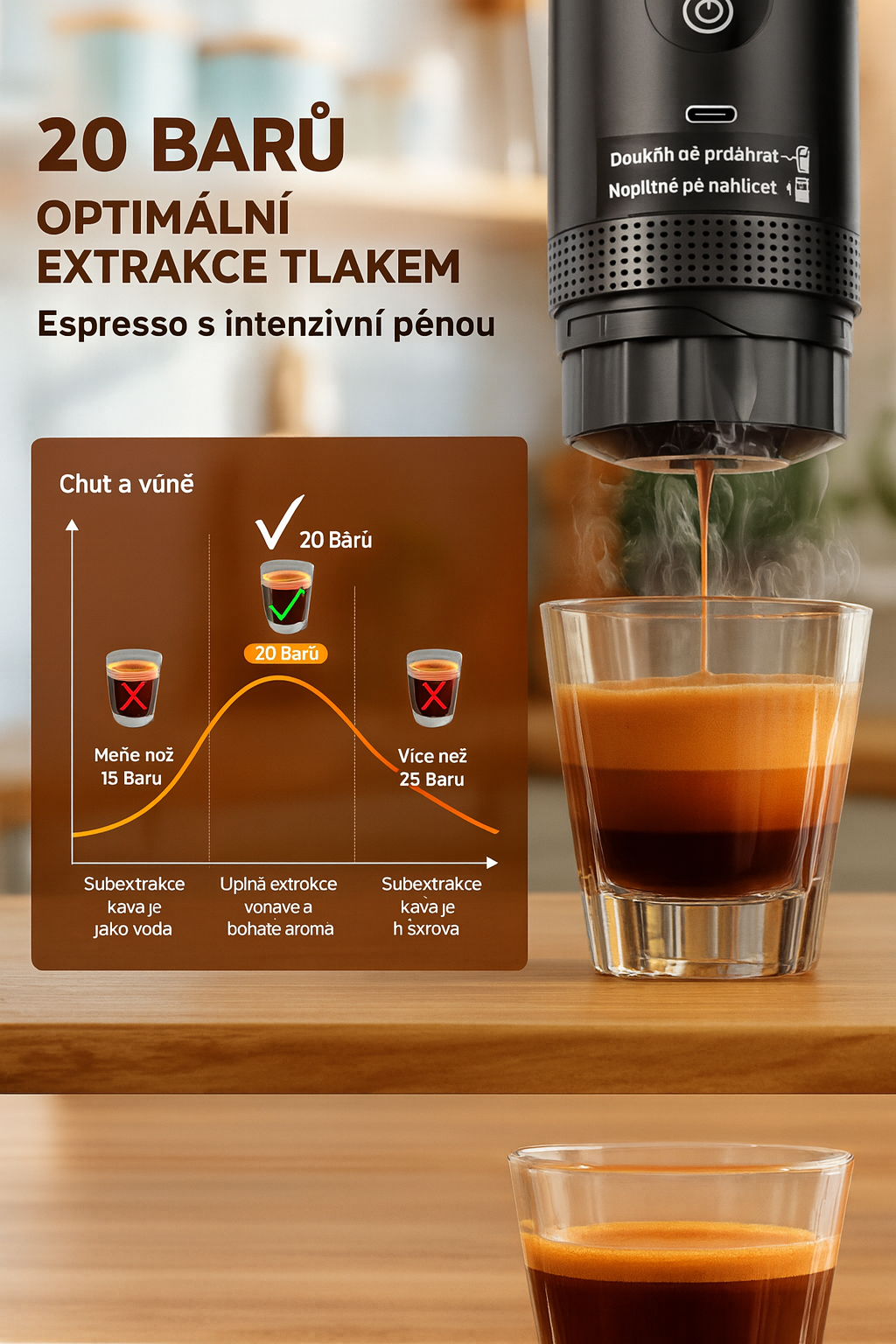 Díky vysokému tlaku, rychlému ohřevu vody a chytrému kompaktnímu designu získáš profesionální výsledek bez potřeby zásuvky, velkého stroje nebo baristy.